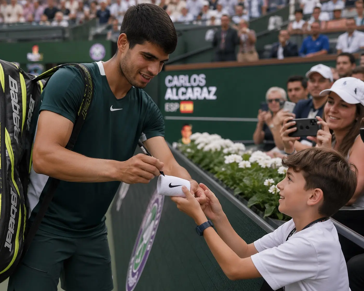 En un gesto inesperado, Alcaraz se quitó la muñequera que llevaba y se la entregó al niño. No fue un movimiento teatral ni exagerado, sino algo natural, casi instintivo, como si supiera exactamente lo que ese regalo significaría.